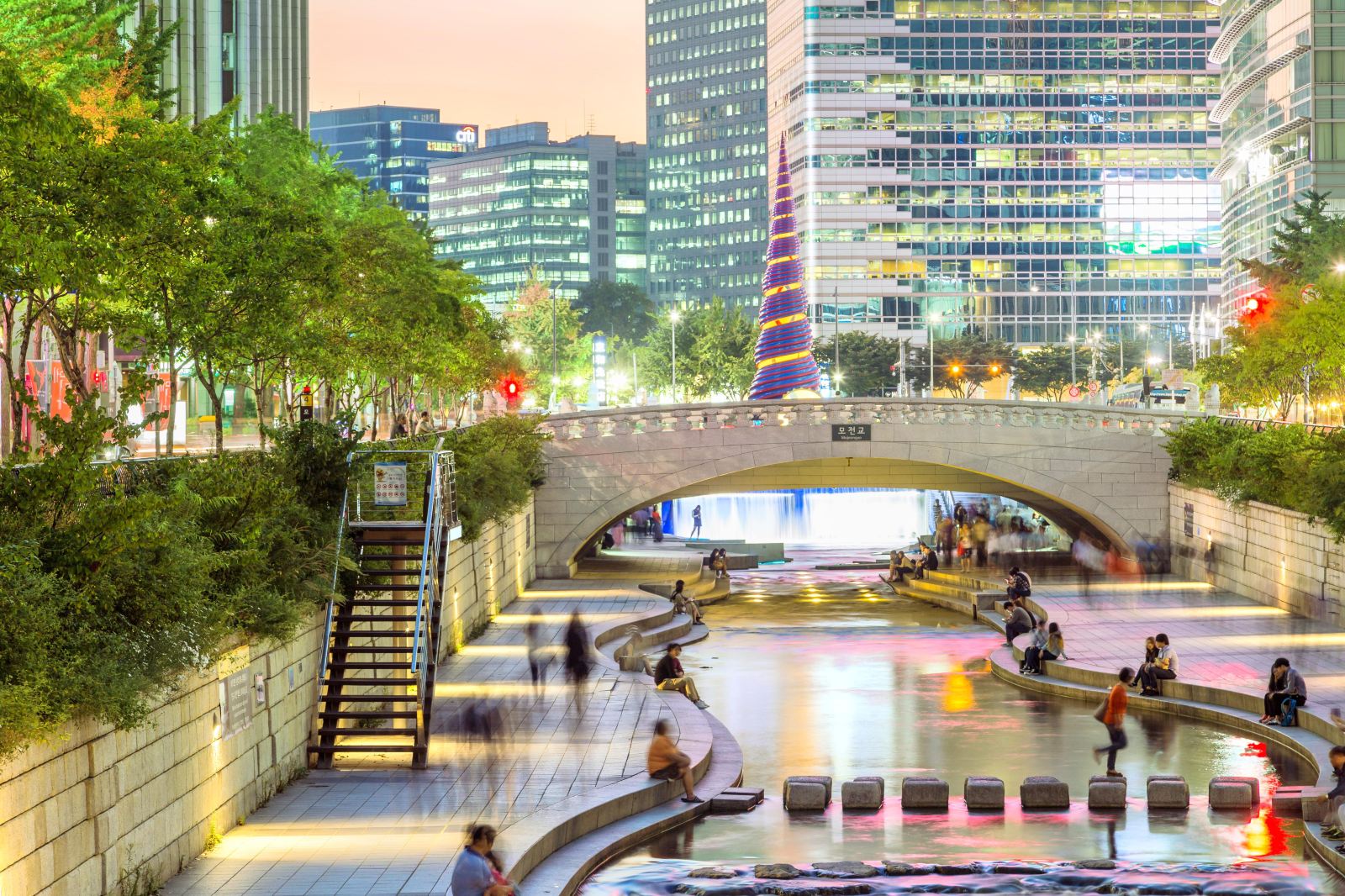 Cheonggyecheon Stream is an 11 km-long stream that runs through downtown Seoul. Created as part of an urban renewal project, Cheonggyecheon Stream is a restoration of the stream that was once there during the Joseon Dynasty (1392-1910). The stream was covered with an elevated highway after the Korean War (1950-1953), as part of the country's post-war economic development. Then in 2003, the elevated highway was removed to restore the stream to its present form today. The stream starts from Cheonggye Plaza, a popular cultural arts venue, and passes under a total of 22 bridges before flowing into the Hangang River, with many attractions along the way.