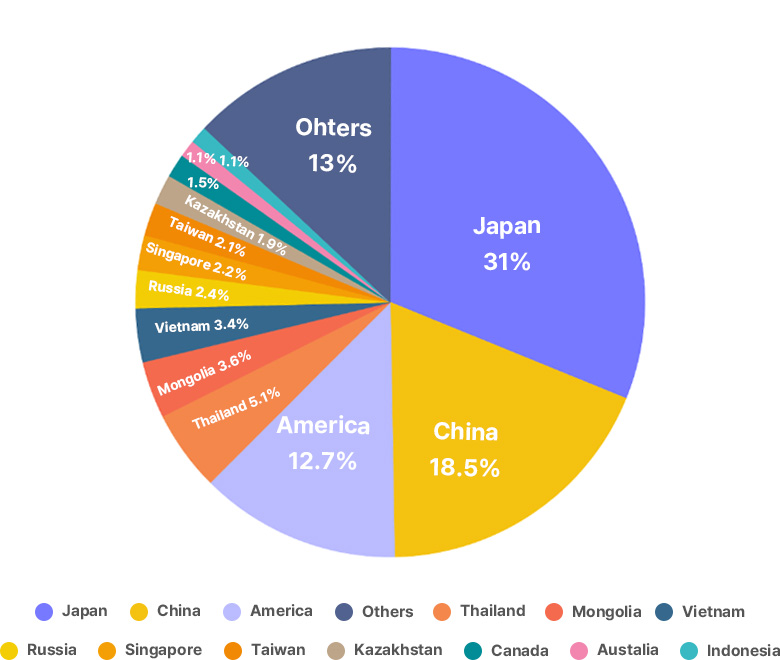 2. Japan and China accounted for 49.5% (300,000) of foreign patients, followed by the United States at 12.7% (77,000) and Thailand at 5.1% (30,000).